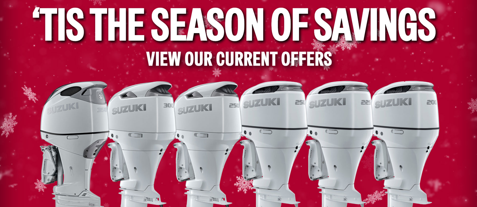 Now through DECEMBER 31ST, 2025, Suzuki Marine is offering ‘TIS THE SEASON OF SAVINGS, MVL REBATES on any qualifying 2.5hp-350hp engines up to $500*. There is no better time to purchase the ULTIMATE outboard for your new boat package or to repower your current boat. Contact your authorized Suzuki Marine dealer for additional information.